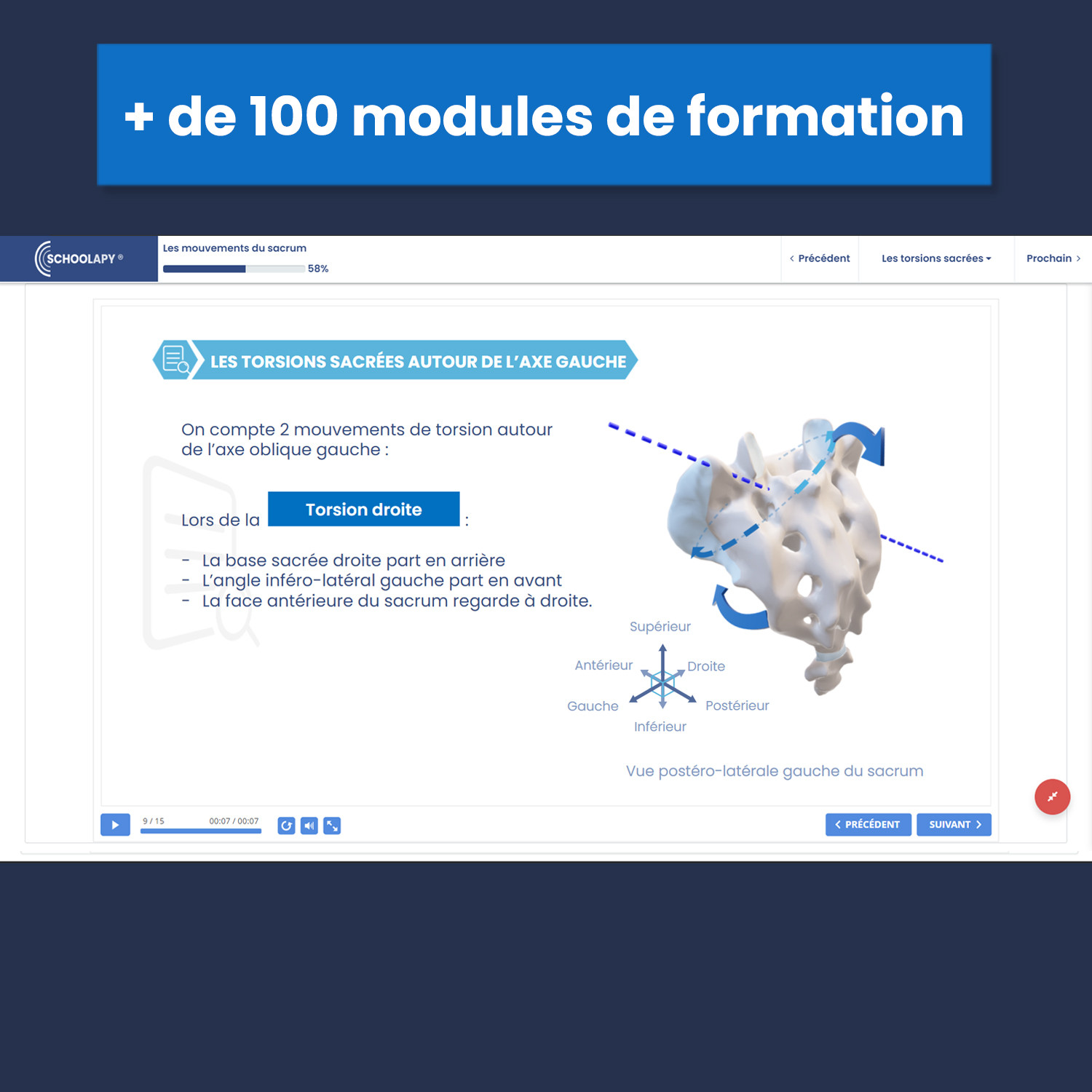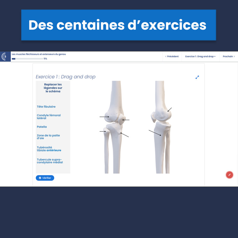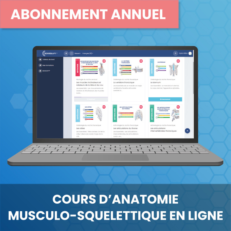 - Plus de 100 cours digitaux d’anatomie musculosquelettique (ostéologie, arthrologie et myologie du rachis, du bassin et des membres).