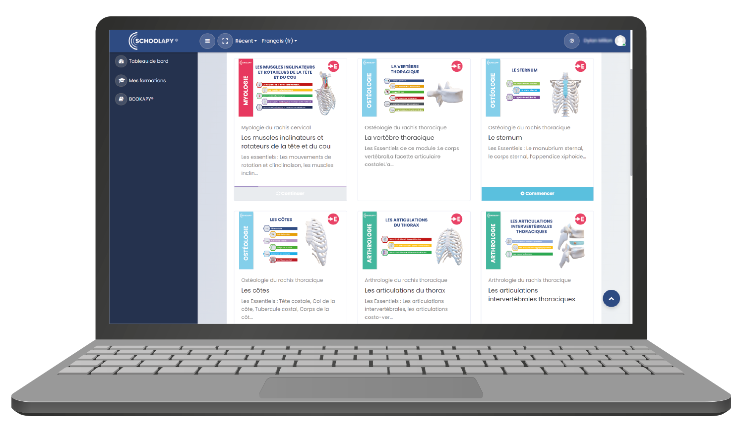 - plus de 100 cours digitaux en anatomie musculosquelettique sonorisés, dynamiques avec de la 3D manipulable en temps réel et + de 50% d'activités interactives intégrées